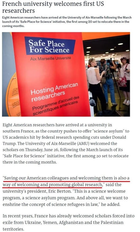 用艾克斯-馬賽大學校長埃里克·伯頓的話說,“拯救并歡迎我們的美國同事也是促進全球科研事業(yè)的一種方式”。