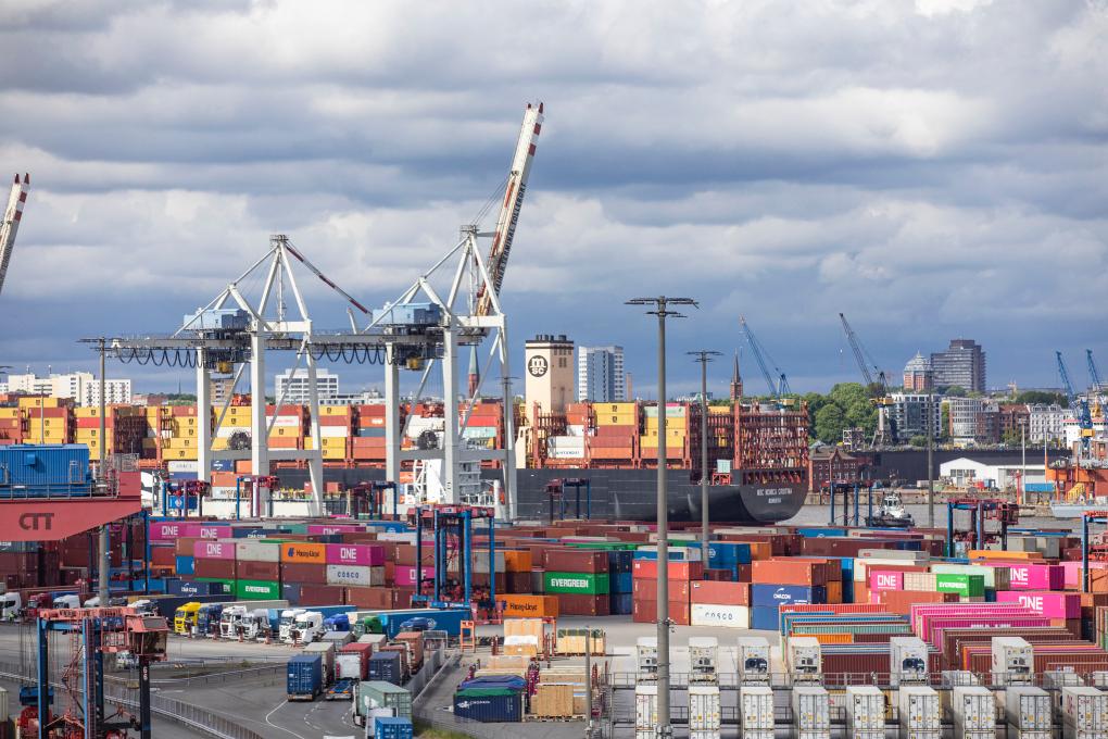這是5月28日拍攝的德國漢堡港口與物流股份公司旗下漢堡港CTT集裝箱碼頭景象。新華社記者張帆攝