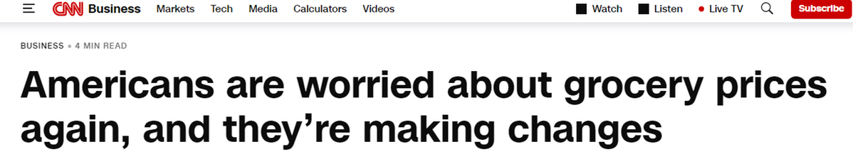 報(bào)道還指出,民調(diào)清晰地表明美國人對高昂的食品成本和經(jīng)濟(jì)狀況倍感焦慮,他們的購物方式也因此出現(xiàn)巨大改變。這與眾多企業(yè)提到的情況一致,他們表示消費(fèi)者正在調(diào)整購物模式,比如從購買大包裝改成買小包裝,只買生活必需品,更多地在家吃飯。