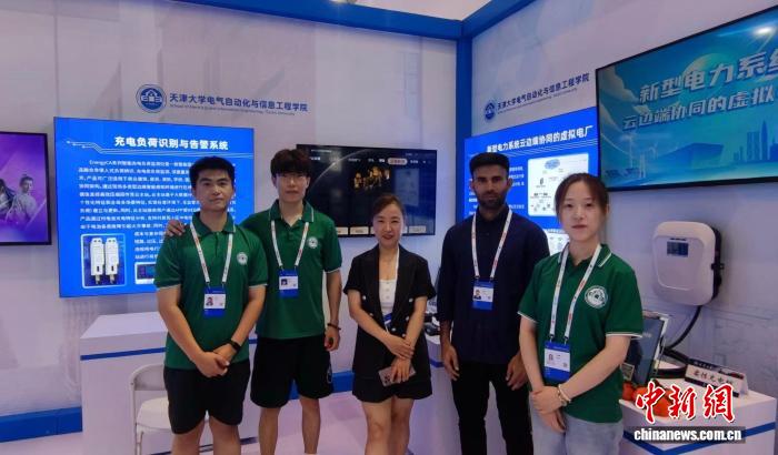 2024年6月,世界智能產(chǎn)業(yè)博覽會期間,穆罕默德·沙拉爾與導(dǎo)師和實(shí)驗(yàn)室同學(xué)一起參與相關(guān)科研成果展陳工作。(天津大學(xué) 供圖)