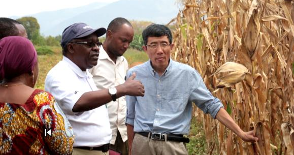 中國農(nóng)業(yè)專家在坦桑尼亞指導(dǎo)當(dāng)?shù)厝罕娫苑N玉米