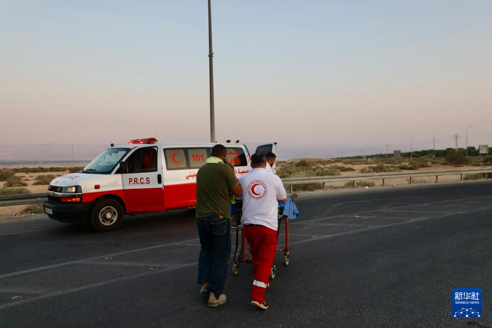 9月18日,急救人員在約旦河西岸地區(qū)與約旦交界處艾倫比橋陸路口岸附近的襲擊現場開展工作。新華社發(fā)(賈馬爾·阿瓦德攝)