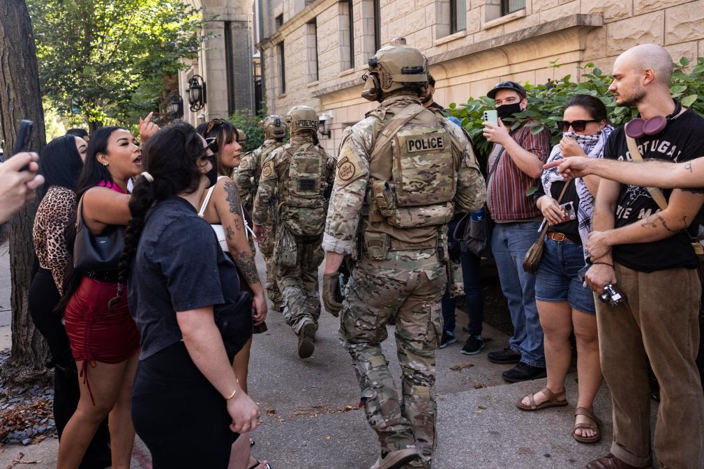 據(jù)美聯(lián)社報道,28日,數(shù)十名全副武裝的聯(lián)邦執(zhí)法人員在芝加哥市一些著名的旅游和購物區(qū)巡邏,吸引不少購物者和在街邊咖啡館用餐的家庭注意,許多人拿出手機錄像。