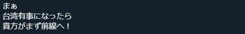 帖文大意:呵呵,若臺灣有事,你先沖去前線!