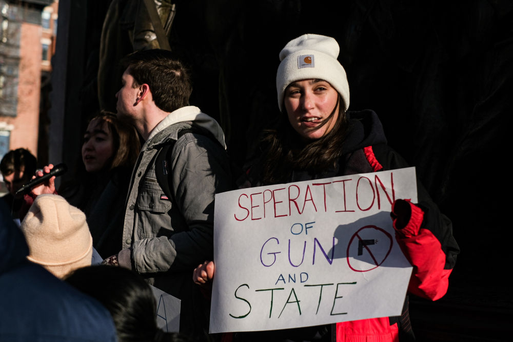 2023年2月24日,在美國馬薩諸塞州波士頓,當(dāng)?shù)貙W(xué)生參加反槍支暴力集會。新華社發(fā)(朱子于攝)