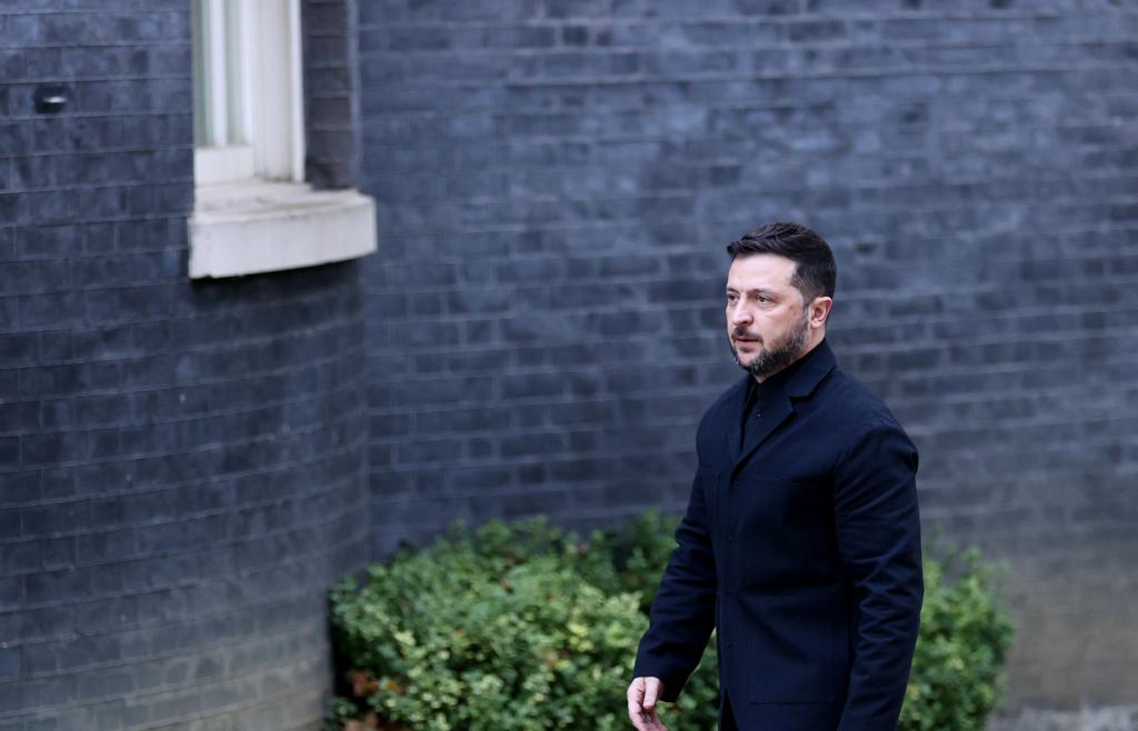 10月24日,在英國(guó)倫敦,烏克蘭總統(tǒng)澤連斯基走向唐寧街10號(hào)首相府。新華社記者李穎攝