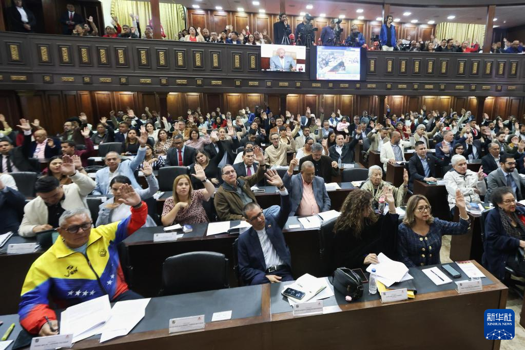 1月29日,在委內瑞拉首都加拉加斯,議員們在委內瑞拉立法機構全國代表大會例行會議上舉手表決。新華社發(fā)(委內瑞拉全國代表大會供圖)