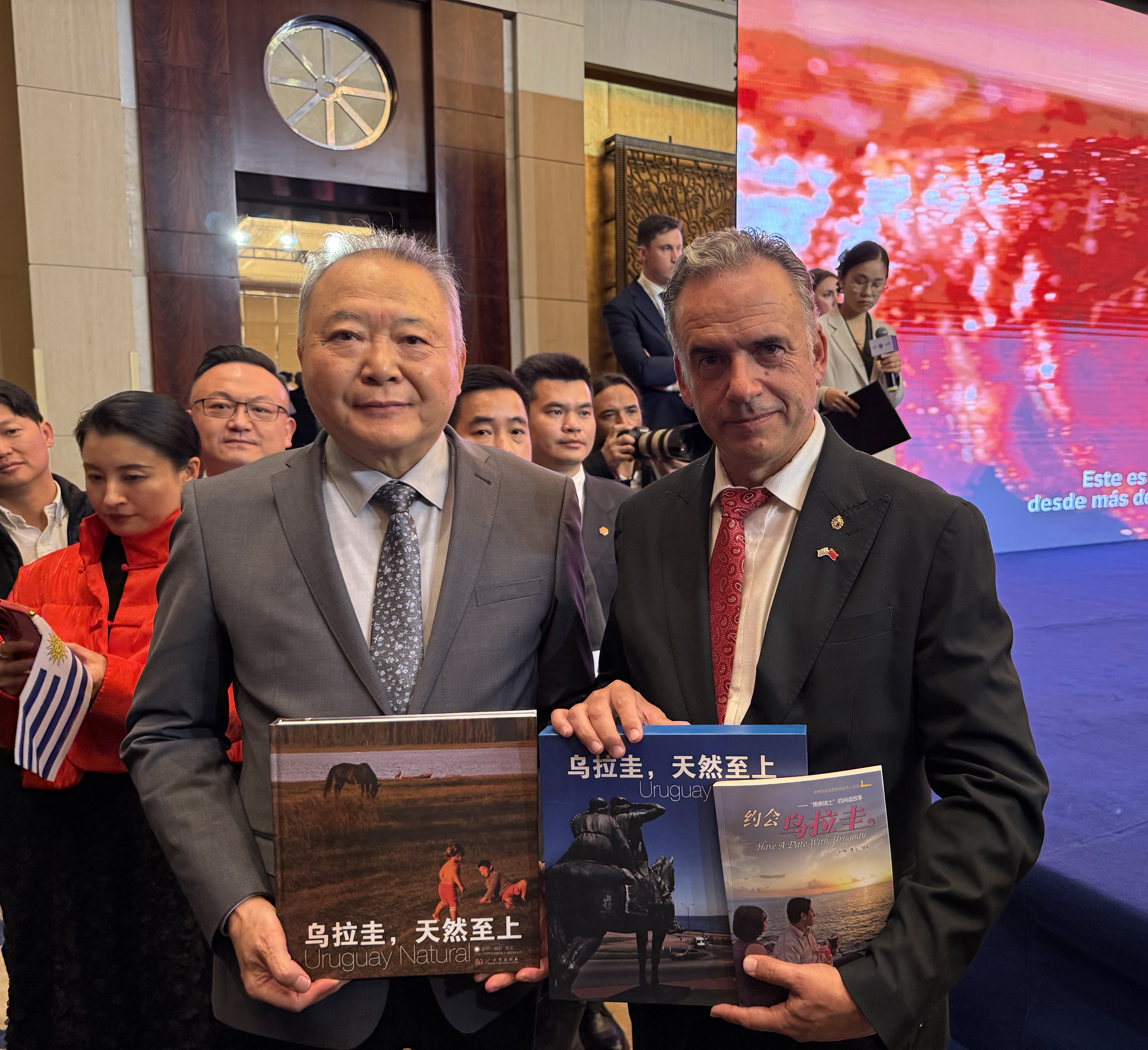 2021年5月27日,《烏拉圭,天然至上》新書首發(fā)儀式在武漢舉行,烏拉圭駐華大使費爾南多·盧格里斯等近百名嘉賓出席。大使在致辭中引用“德不孤,必有鄰”,稱這本書“是兩國人民深厚情誼的體現(xiàn),也是兩種完全不同且跨越大洋的文化碰撞與交融”。