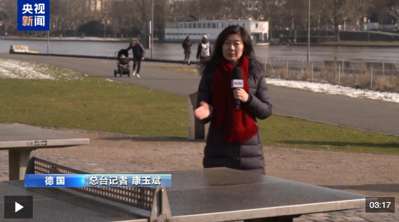 總臺記者 康玉斌:初到德國,有一幕場景讓我印象格外深刻,像我身邊這樣的乒乓球臺隨處可見,從街心公園到學校操場,總能看見它的身影。德國乒乓球運動普及率之高、群眾基礎之深厚,讓我深感意外。