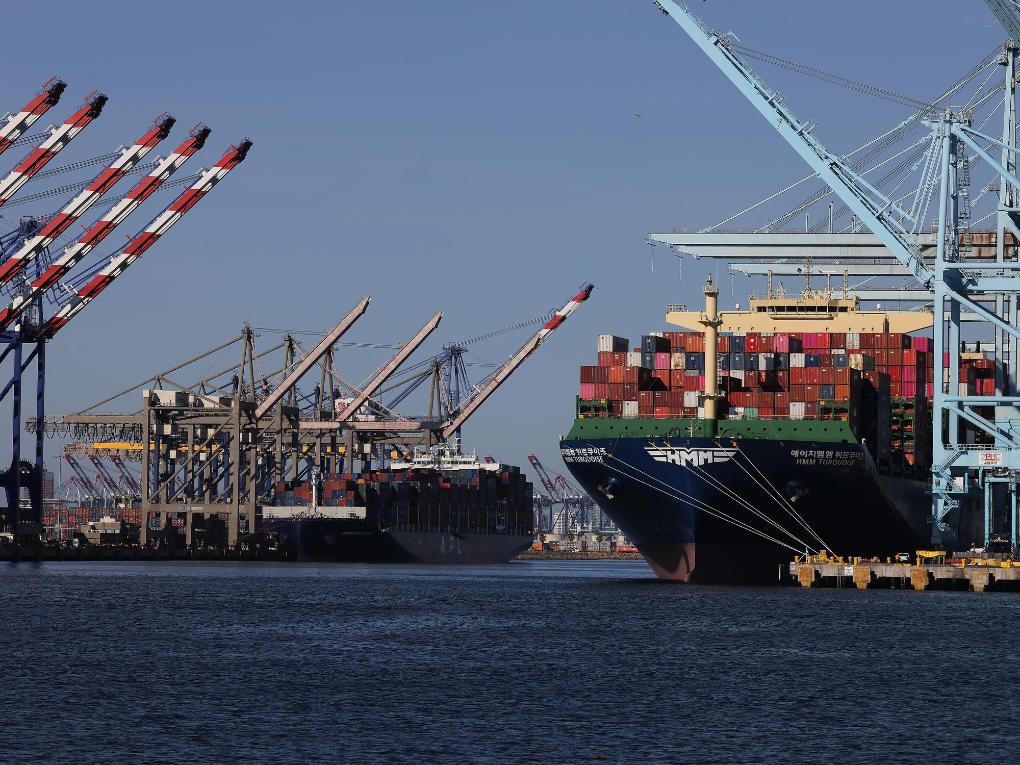 這是2025年5月10日在美國洛杉磯港拍攝的貨船。新華社發(fā)(邱晨攝)