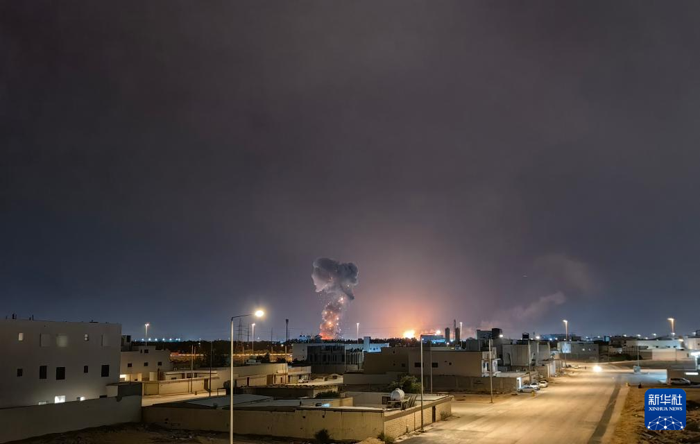 3月18日晚,沙特首都利雅得南部地區(qū)遇襲現(xiàn)場(chǎng)升起濃煙。新華社發(fā)