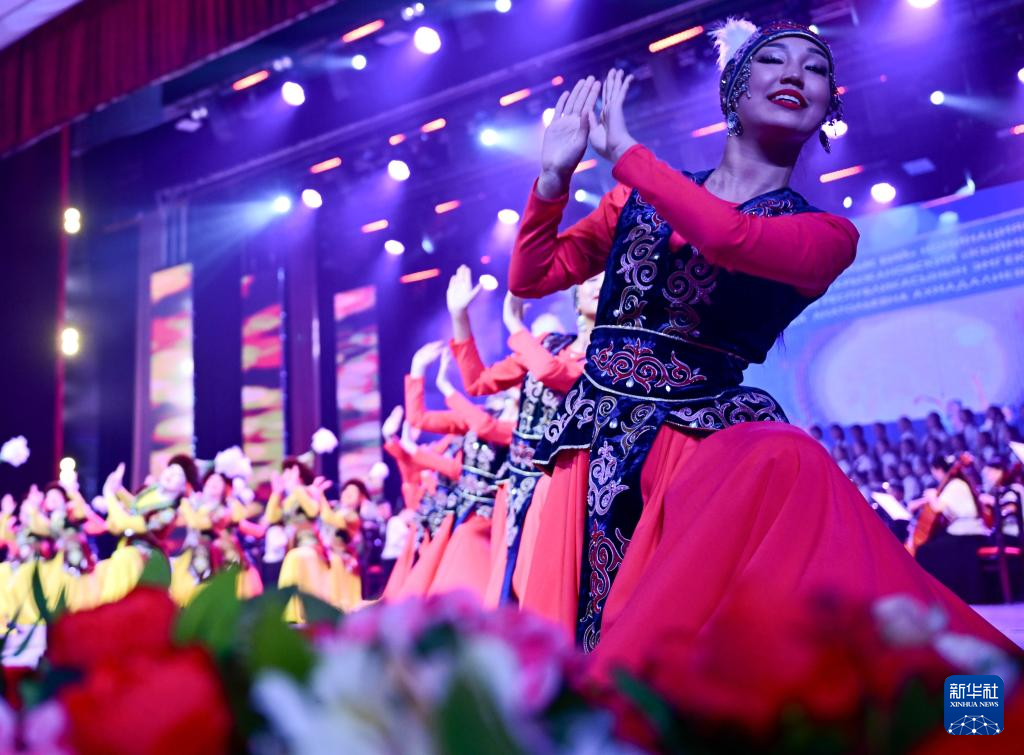 3月24日,在吉爾吉斯斯坦首都比什凱克,演員在開幕式上表演舞蹈。新華社記者 李任滋 攝