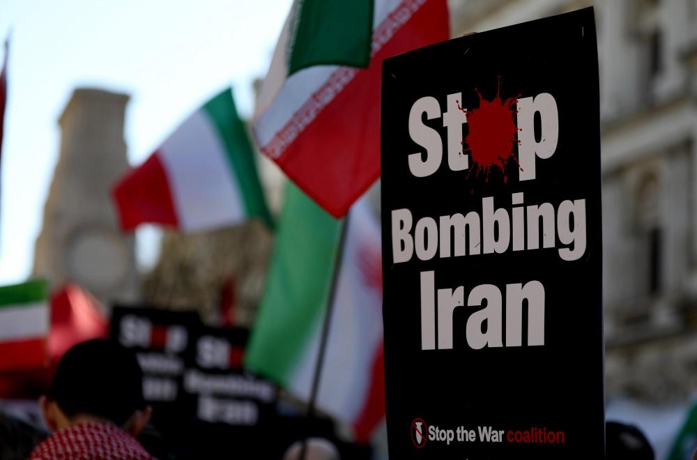 3月21日,人們?cè)谟鴤惗貐⒓蛹瘯?huì),抗議美國和以色列對(duì)伊朗發(fā)動(dòng)軍事打擊。新華社記者李穎攝