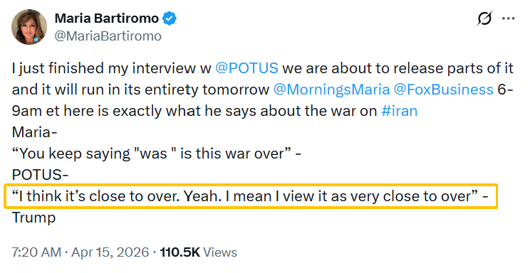 特朗普當(dāng)天接受??怂剐侣?lì)l道記者采訪。記者問,為什么“你一直在說‘戰(zhàn)爭(zhēng)結(jié)束了’”。特朗普回答說:“我覺得(伊朗戰(zhàn)事)已經(jīng)接近結(jié)束了。是的,我是說,我認(rèn)為已經(jīng)非常接近結(jié)束了?!?/p>