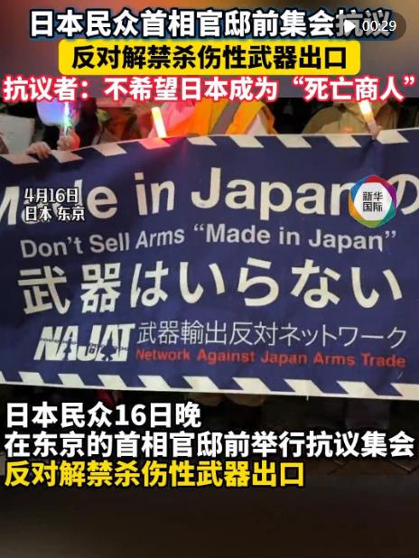 針對(duì)高市早苗政府計(jì)劃近期修改“防衛(wèi)裝備轉(zhuǎn)移三原則”及其運(yùn)用指南,日本民眾16日晚在東京的首相官邸前舉行抗議集會(huì),反對(duì)解禁殺傷性武器出口。