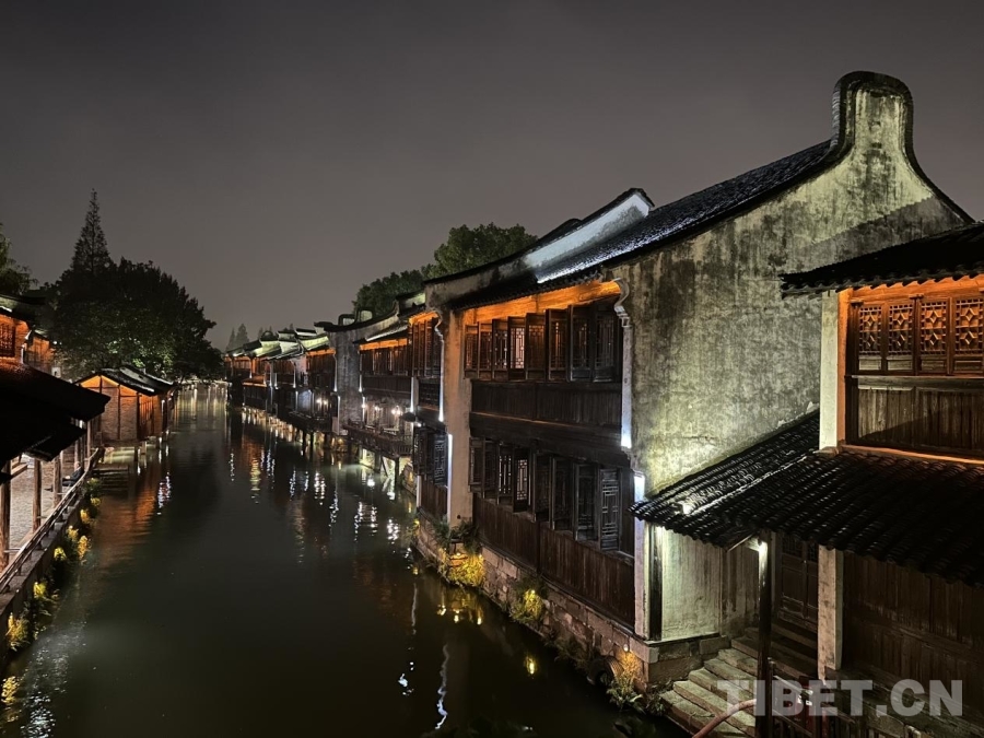 圖為夜晚的烏鎮(zhèn)。古色古香的烏鎮(zhèn)修舊如舊,在今天仍然保持著千年前的風(fēng)采。攝影:畢然
