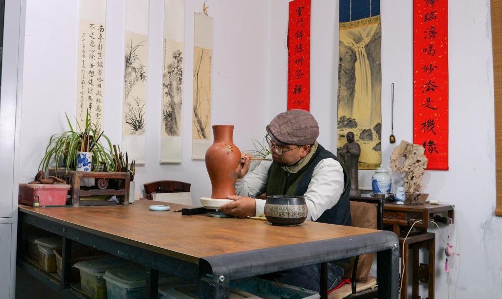 “很多年輕制陶人和我一樣,旅游時(shí)被當(dāng)?shù)貍鹘y(tǒng)紫陶文化吸引,又眷戀這里的風(fēng)土人情,最終決定長(zhǎng)居?!彼f。