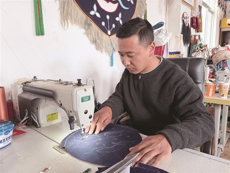 十二三歲時,心中的害怕漸漸淡去,變成了親近與向往。十五六歲初中畢業(yè),他正式拿起針線,決心接過家族的手藝。家里一半人勸他繼續(xù)讀書,覺得出路更寬;可他清楚,家里總要有人接過這門五代相傳的手藝,再加上真心熱愛,他順理成章留了下來,一頭扎進了藏戲服飾制作的世界。
