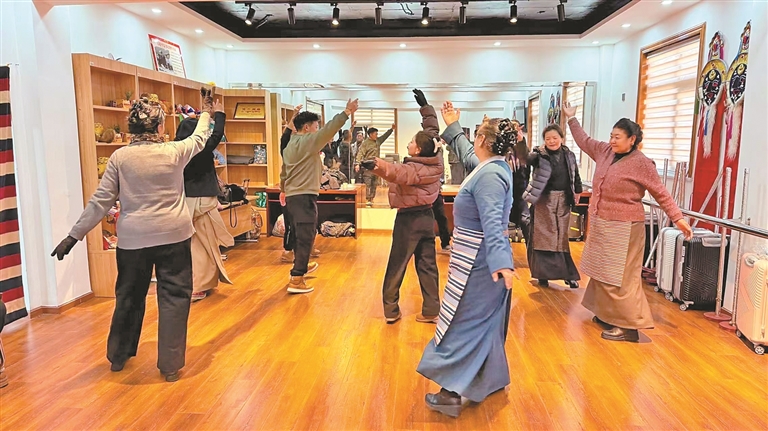 圖為轄區(qū)群眾在扎細新村社區(qū)舞蹈室內歡快起舞。
