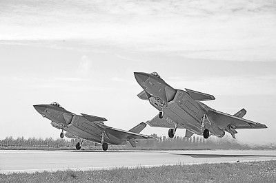 空軍“王海大隊(duì)”飛行員駕駛殲-20戰(zhàn)機(jī)編隊(duì)起飛。王鴻飛攝/光明圖片
