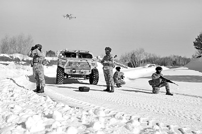 陸軍某旅三角山邊防連執(zhí)勤組外出巡邏時(shí)使用無(wú)人機(jī)偵察。新華社發(fā)