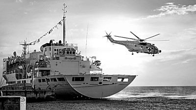 中國(guó)海軍“和平方舟”號(hào)醫(yī)院船靠泊所羅門(mén)群島霍尼亞拉港期間,艦載醫(yī)療救護(hù)直升機(jī)開(kāi)展巡診服務(wù)。新華社發(fā)