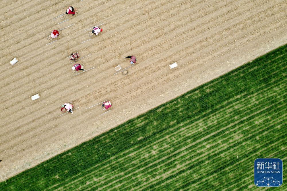 3月17日,河南省焦作市溫縣黃莊鎮(zhèn)南韓村農(nóng)民在田間種植鐵棍山藥(無(wú)人機(jī)照片)。新華社發(fā)(徐宏星攝)