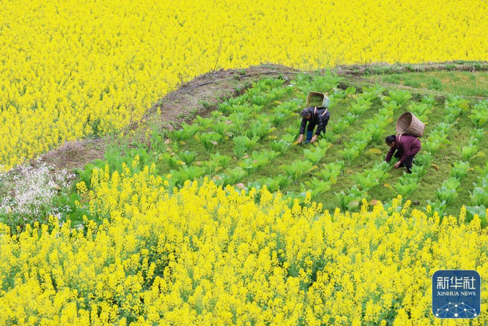 3月17日,在貴州省黔東南苗族侗族自治州岑鞏縣注溪鎮(zhèn)周坪村,村民在田間勞作。新華社發(fā)(羅慧攝)