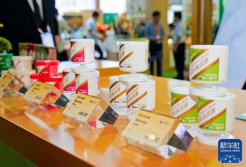 茅臺展區(qū)展示的茅臺冰淇淋。近年來,茅臺不斷推出文創(chuàng)產品,品牌年輕化成效顯著。新華社記者王楚天 攝
