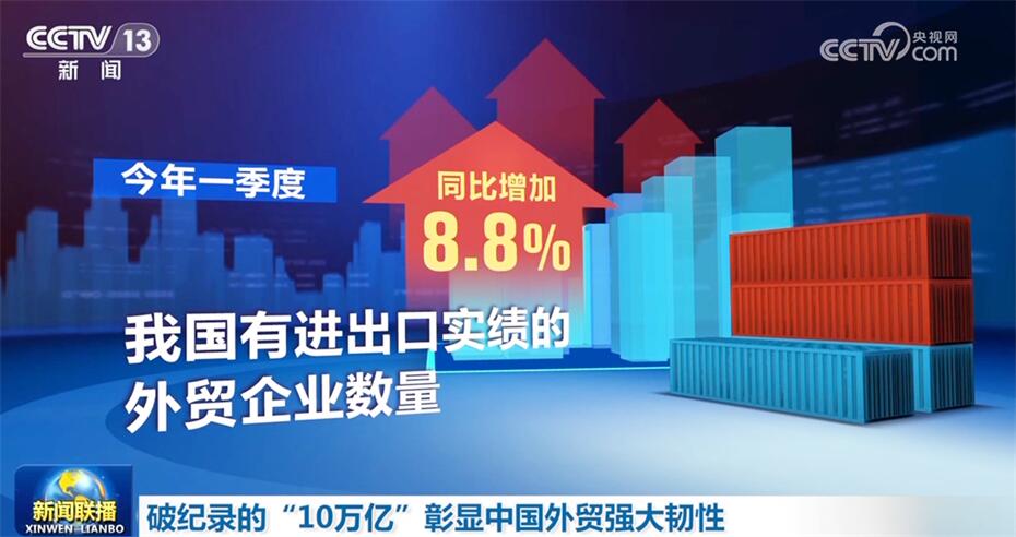 一季度,我國貨物貿(mào)易進出口規(guī)模歷史同期首次突破10萬億元,增速創(chuàng)6個季度以來新高。一季度進出口令人欣喜的數(shù)據(jù)彰顯了中國外貿(mào)的強大韌性,提振了人們對實現(xiàn)今年經(jīng)濟增長目標的信心。