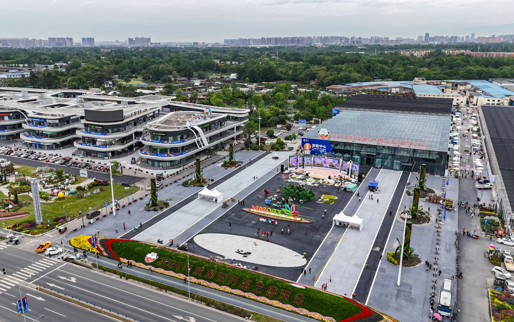 這是成都世園會(huì)主會(huì)場(chǎng)入口(無(wú)人機(jī)照片,2024年4月14日攝)。新華社記者 江宏景 攝