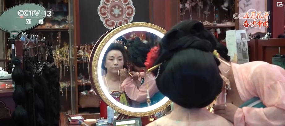 在陜西西安,有這樣一位年輕人,她仿佛擁有一種復(fù)刻舊時(shí)光的魔力。敷粉、畫眉、點(diǎn)唇,穿上漢服、戴上發(fā)飾,不到1個(gè)小時(shí),一個(gè)現(xiàn)代的女孩就穿越回了漢唐。“00后”漢服妝造師胡芯銀,讓今人和古人在裝束上相逢。