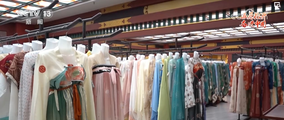 看起來對(duì)漢服造型頗有研究的胡芯銀今年只有24歲。胡芯銀介紹,也就是在這幾年,隨著大家對(duì)傳統(tǒng)文化的喜愛,西安的漢服館如雨后春筍般涌現(xiàn)。感受到“漢服熱”的胡芯銀在2022年初,辭去了原先婚禮跟妝的工作,應(yīng)聘到了這家位于長(zhǎng)安十二時(shí)辰主題街區(qū)附近的漢服館,擔(dān)任漢服造型師。