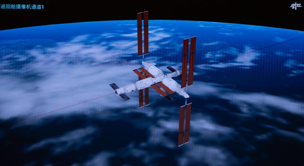 2024年1月18日在北京航天飛行控制中心拍攝的天舟七號貨運飛船向空間站組合體靠攏的畫面。