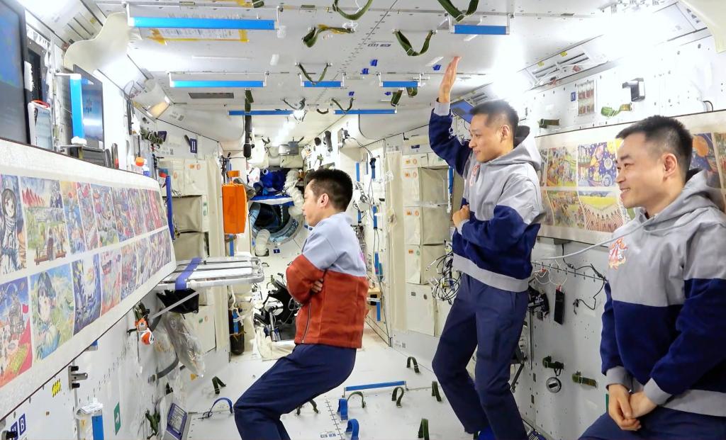 2024年2月23日,第三屆“天宮畫展”在中國空間站開展。神舟十七號航天員乘組在軌展示和介紹了新時代青少年暢想中國式現(xiàn)代化的美麗畫卷。