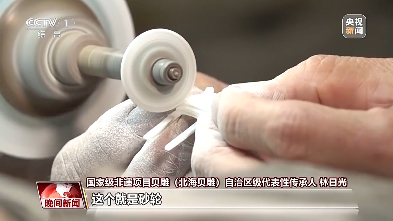 如切如磋,如琢如磨。廣西北海貝雕,以工藝精湛著稱,一件貝雕作品往往歷經(jīng)構(gòu)圖、白描、磨型、雕琢、拋光等多道工序。從藝五十年的林師傅說(shuō),制作貝雕,最重要的工具是砂輪。