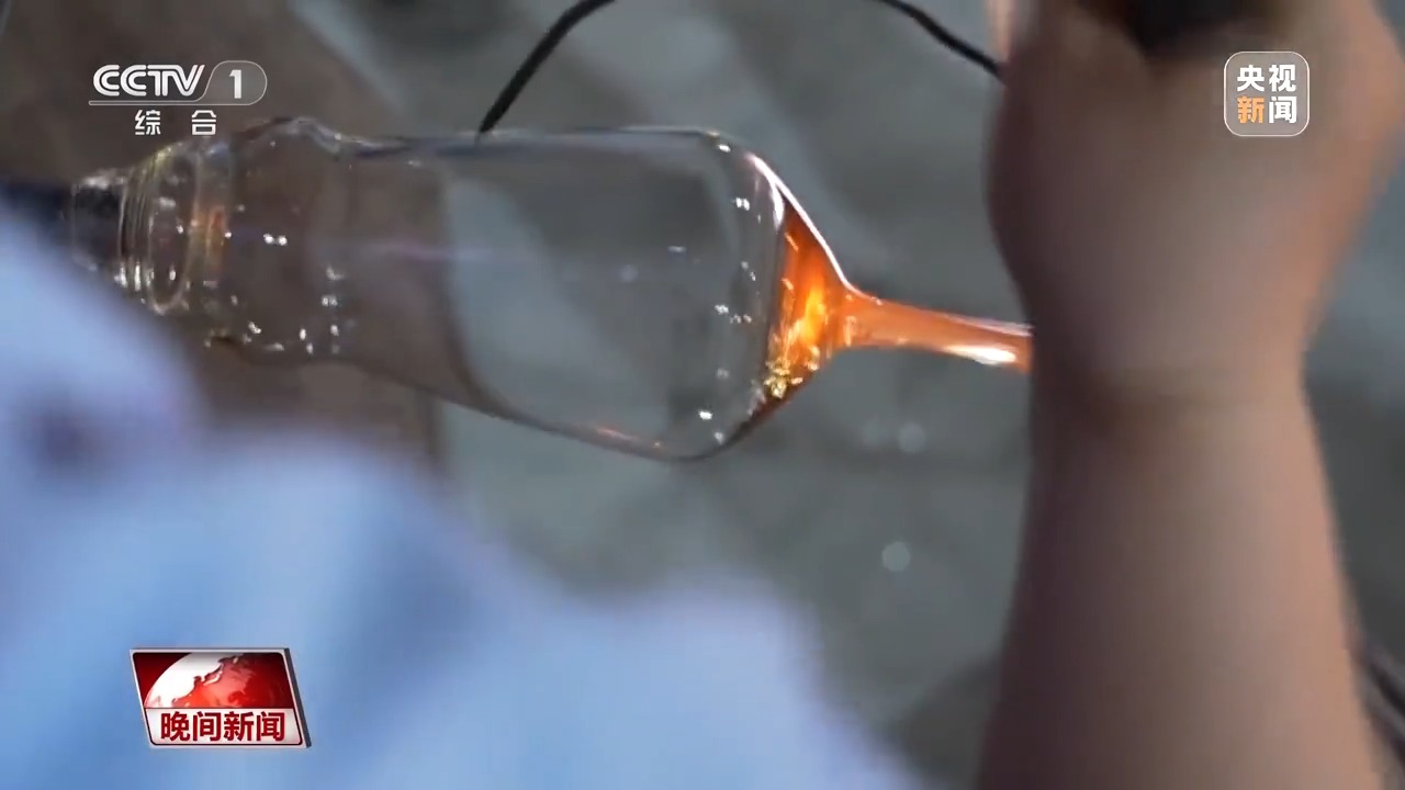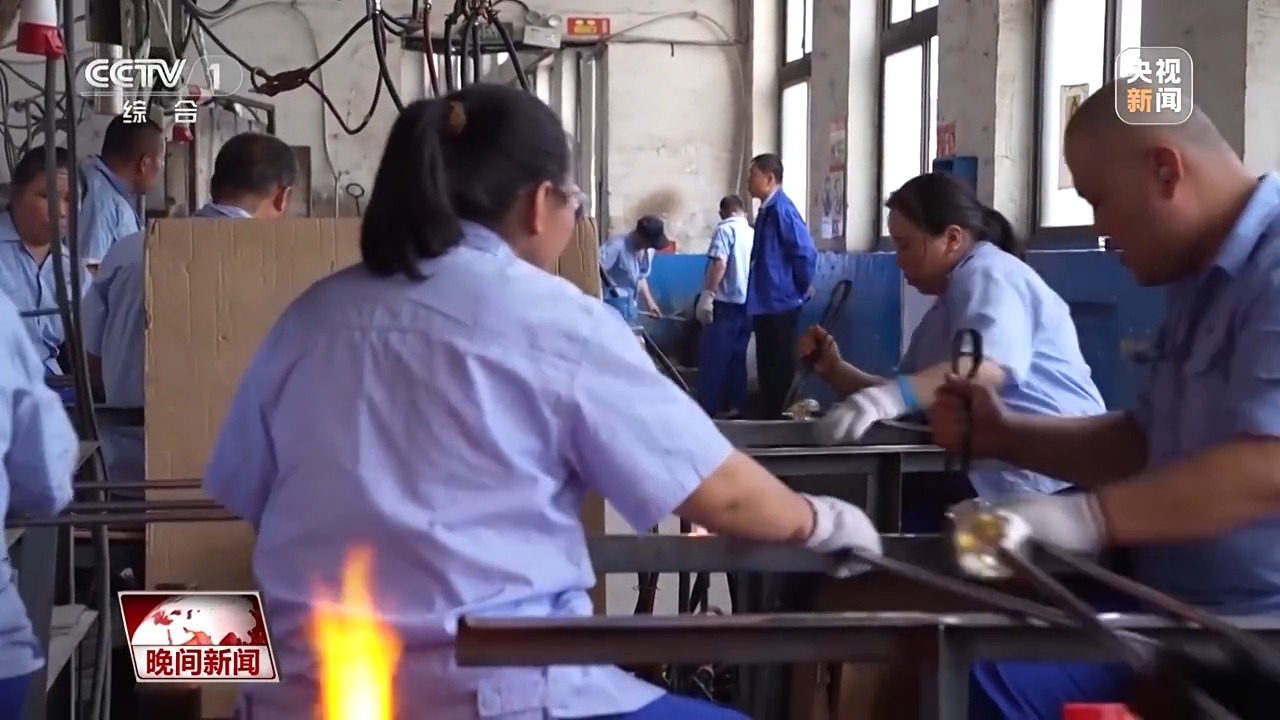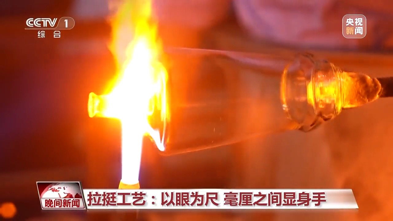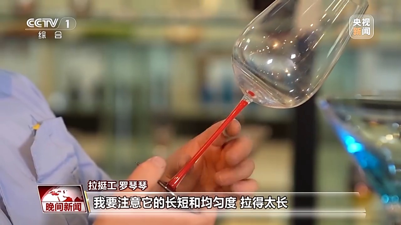 在素有“中國(guó)玻璃器皿之都”美譽(yù)的山西祁縣,人工吹制玻璃器皿的手藝被認(rèn)定為省級(jí)非遺。一團(tuán)團(tuán)紅彤彤的玻璃溶液,在數(shù)十位師傅手中傳來(lái)傳去,吹好杯身的毛坯,傳遞到拉挺師傅羅琴琴手中。