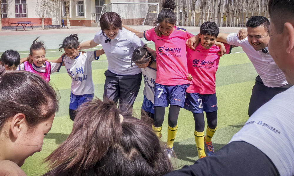 這樣的快樂(lè),在水慶霞指導(dǎo)這次隨著“追風(fēng)計(jì)劃”來(lái)到且克村小學(xué)的時(shí)候,姐姐和妹妹都感受到了。水指導(dǎo)看了她們的比賽,還見(jiàn)證了妹妹的兩個(gè)進(jìn)球,又帶著且克村小學(xué)的女足隊(duì)員們上了一堂邊路配合的訓(xùn)練課。