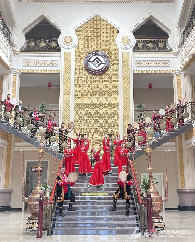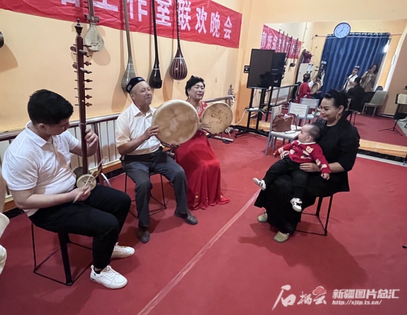 在哈密市非物質文化遺產保護中心,回城鄉(xiāng)的傳承人們和當地演員進行哈密木卡姆表演。石榴云/新疆日報記者 王晶晶攝