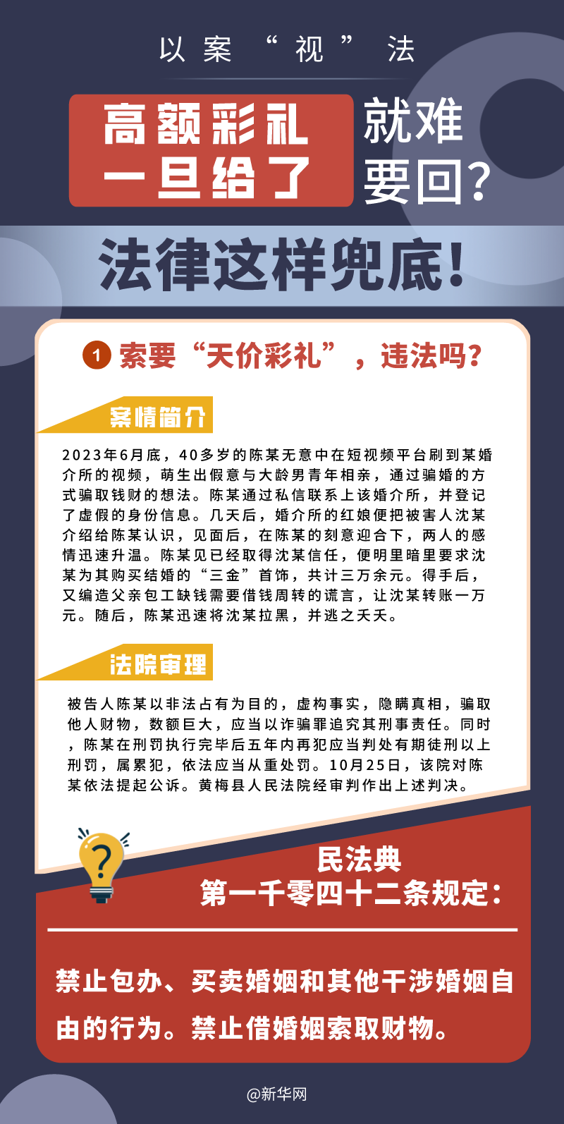 “五一”長假期間,各地迎來了婚禮高峰期,“彩禮”話題,尤其農(nóng)村高額彩禮現(xiàn)象備受關(guān)注。破解高價(jià)彩禮,在解決爭議的層面,司法盡了最大努力兜底。本期《以案“視”法》針對涉“高額彩禮”糾紛,帶大家學(xué)習(xí)相關(guān)法律知識(shí)。