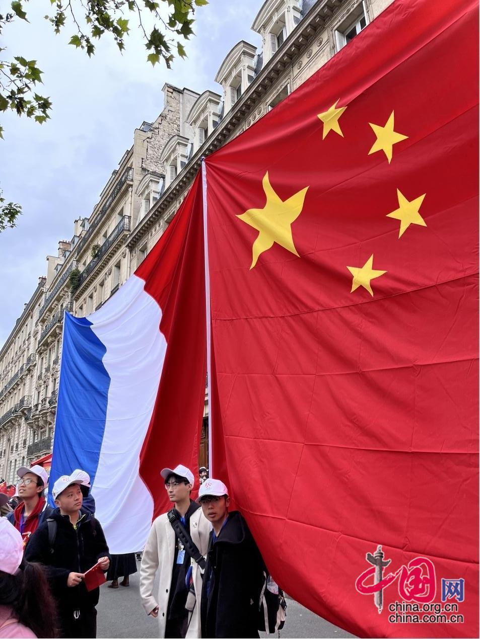 下午5時(shí)左右,習(xí)近平主席的車隊(duì)終于駛來,人群開始興奮,呼喊聲也逐漸高亢。卿馨月回憶,大家一遍又一遍地呼喊著:“歡迎,歡迎,熱烈歡迎”,不少人的嗓子喊破音了,但情緒卻愈發(fā)亢奮。當(dāng)她看到由4個(gè)方陣連接而成的“中國(guó)-法國(guó)-中國(guó)-法國(guó)”巨型國(guó)旗陣赫然眼前時(shí),她坦言,從未有一刻這么熱愛五星紅旗、從未有一刻為自己是中國(guó)人感到如此自豪。