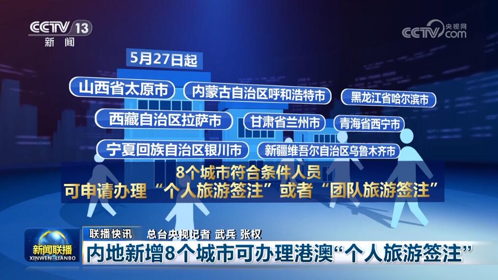 內地新增8個城市可辦理港澳“個人旅游簽注”