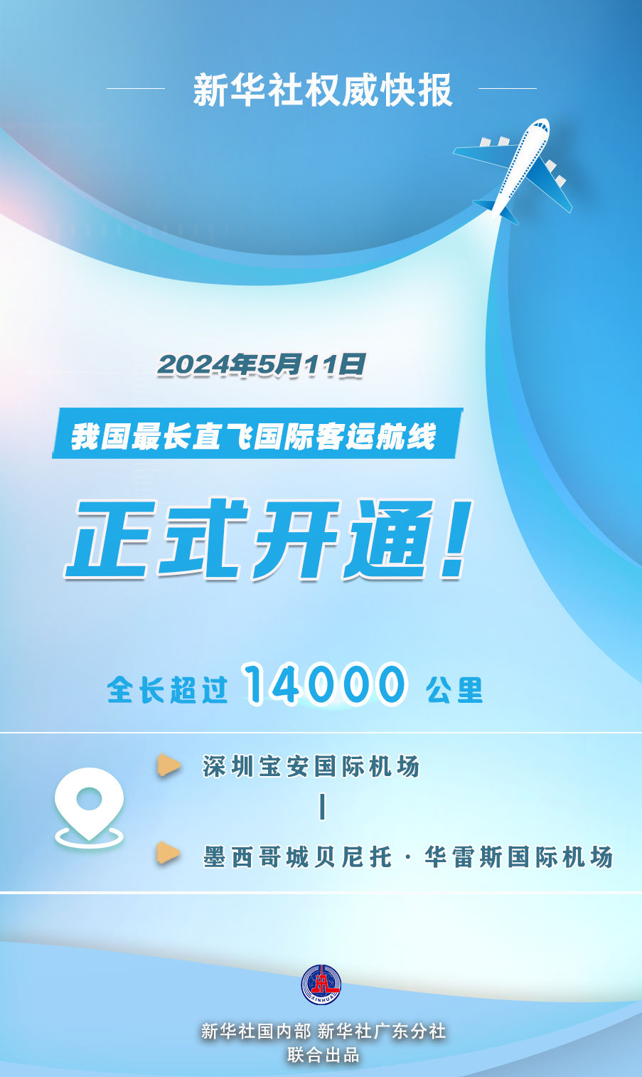 5月11日晚上,首航航班CZ8031從深圳起飛,飛行約16小時,跨越超14000公里,抵達墨西哥城。