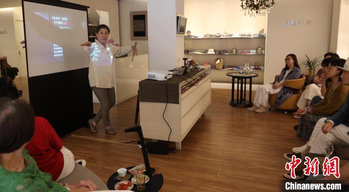 5月10日,臺(tái)灣知名藝術(shù)史學(xué)者朱惠良在臺(tái)北一個(gè)文化沙龍講述昆曲藝術(shù)。圖為朱惠良現(xiàn)場清唱《牡丹亭》名段。中新社記者 劉舒凌 攝