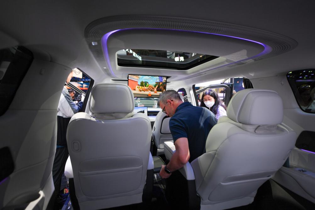 在北京中國國際展覽中心順義館舉行的2024北京車展上,參觀者在小鵬汽車展區(qū)體驗小鵬X9新能源汽車(2024年4月25日攝)。新華社記者鞠煥宗攝