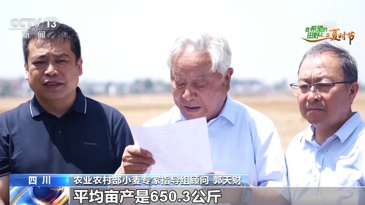 農(nóng)業(yè)農(nóng)村部小麥專(zhuān)家指導(dǎo)組顧問(wèn) 郭天財(cái):我們按照加權(quán)平均,平均畝產(chǎn)是650.3公斤,應(yīng)該說(shuō)創(chuàng)造了四川省百畝連片的最高紀(jì)錄。