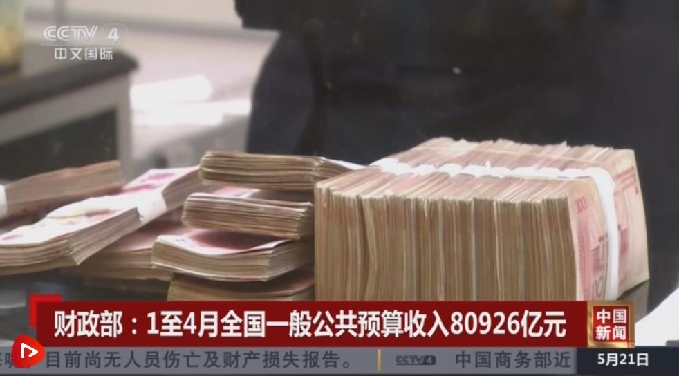 財政部:1—4月全國一般公共預(yù)算收入80926億元
