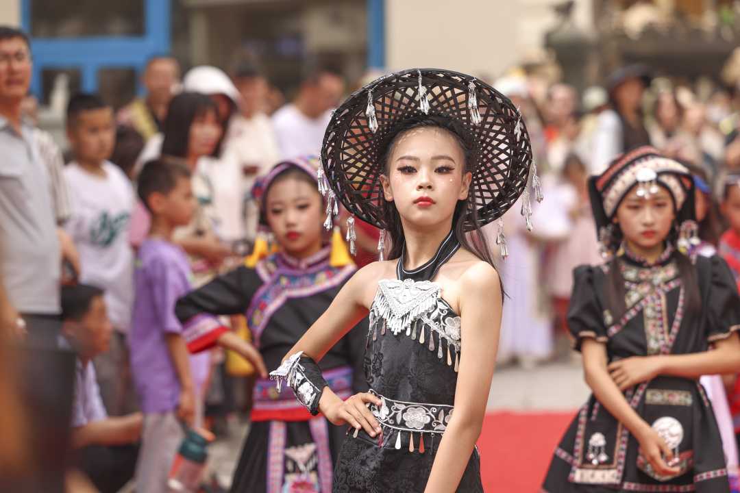 2024年5月19日,演員在庫車市龜茲小巷為游客表演模特秀。袁歡歡攝(中經視覺)