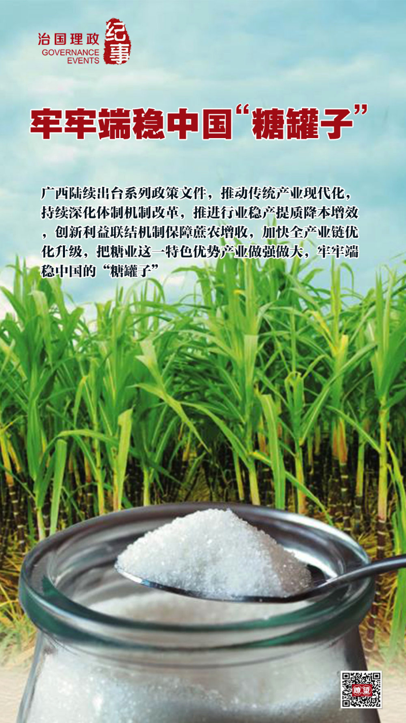 《廣西壯族自治區(qū)人民政府關(guān)于深化體制機(jī)制改革加快糖業(yè)高質(zhì)量發(fā)展的意見》《廣西糖業(yè)降本增效三年行動(dòng)計(jì)劃工作方案》《廣西深化糖料蔗良種良法技術(shù)推廣工作實(shí)施方案》……廣西陸續(xù)出臺(tái)系列政策文件,推動(dòng)傳統(tǒng)產(chǎn)業(yè)現(xiàn)代化,持續(xù)深化體制機(jī)制改革,推進(jìn)行業(yè)穩(wěn)產(chǎn)提質(zhì)降本增效,創(chuàng)新利益聯(lián)結(jié)機(jī)制保障蔗農(nóng)增收,加快全產(chǎn)業(yè)鏈優(yōu)化升級(jí),把糖業(yè)這一特色優(yōu)勢(shì)產(chǎn)業(yè)做強(qiáng)做大,牢牢端穩(wěn)中國的“糖罐子”。