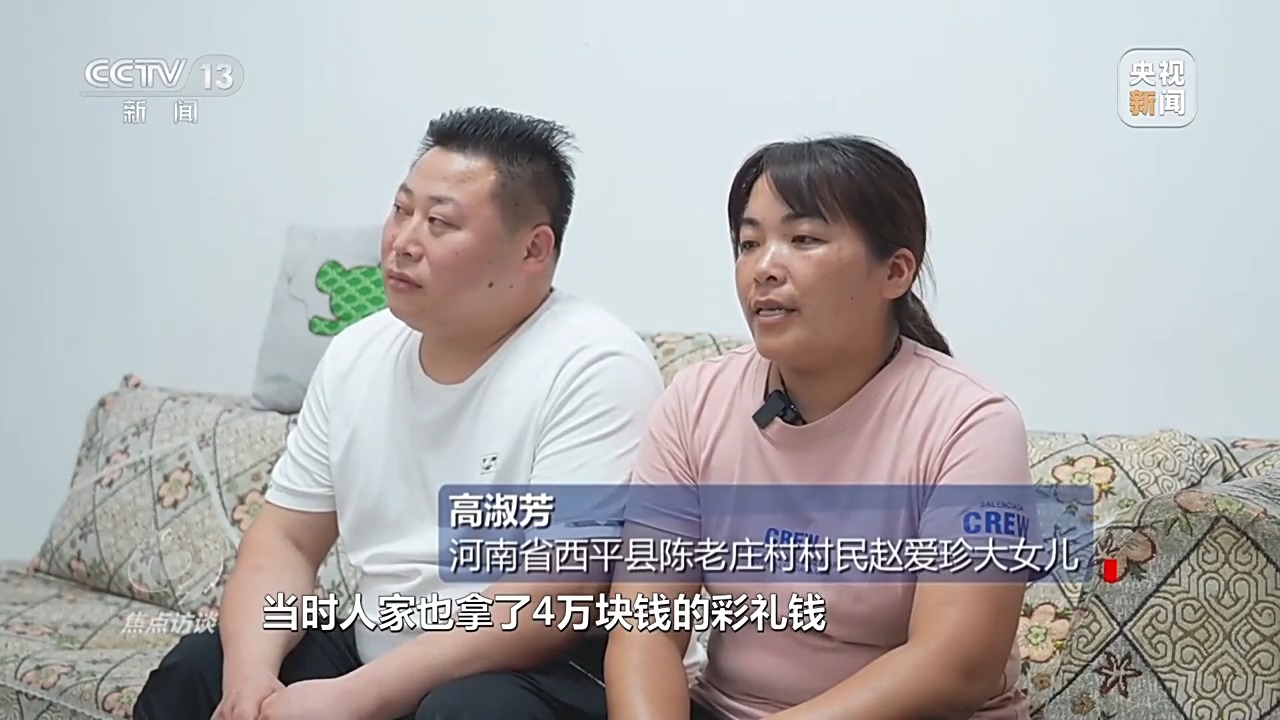 河南省西平縣陳老莊村村民趙愛珍三女婿 王偉:當(dāng)時(shí)我正在創(chuàng)業(yè),手頭也不是很寬裕,就跟親戚朋友借了11萬塊錢。當(dāng)時(shí)汝南縣的彩禮有16萬8的、有18萬8的,我跟女朋友商量了一下,就拿了11萬塊錢過來了。